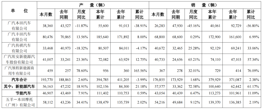 广汽集团3月汽车销售17.69万辆,同比增长1.68%