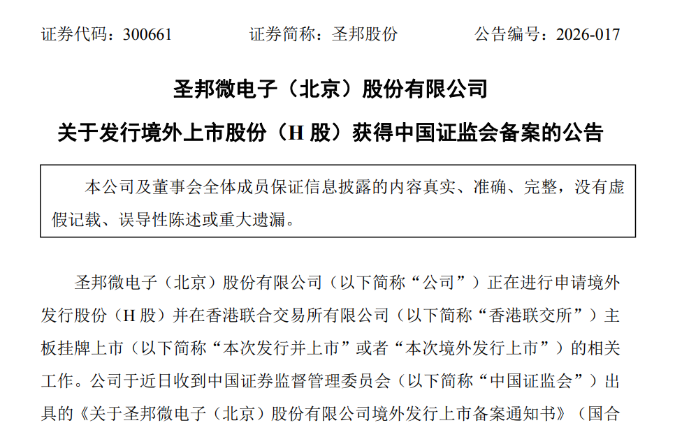 圣邦微电子(北京)股份有限公司(300661.SZ)4月1日再次向香港联交所主板递交上市申请。这是其于2025年9月28日递表失效后,第二次启动H股IPO进程,仍由中金公司、华泰国际担任联席保荐人,强力推进“A+H”双资本平台布局。