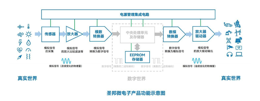 其采用Fabless模式,聚焦模拟集成电路研发、设计与销售,专注于高性能、高品质模拟集成电路研发与销售的高新技术企业,提供品类广泛、差异化的通用型和特定应用优化模拟集成电路产品组合,包括模拟信号和混合信号产品,涵盖信号链、电源管理以及传感器等领域。其中,信号链和电源管理是其产品矩阵的“双支柱”。