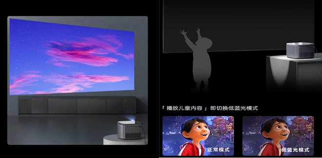 无感对焦与梯形校正:实现瞬时、精准的自动对焦,并支持全自动梯形校正,即使设备倾斜放置,也能瞬间投射出方正画面。