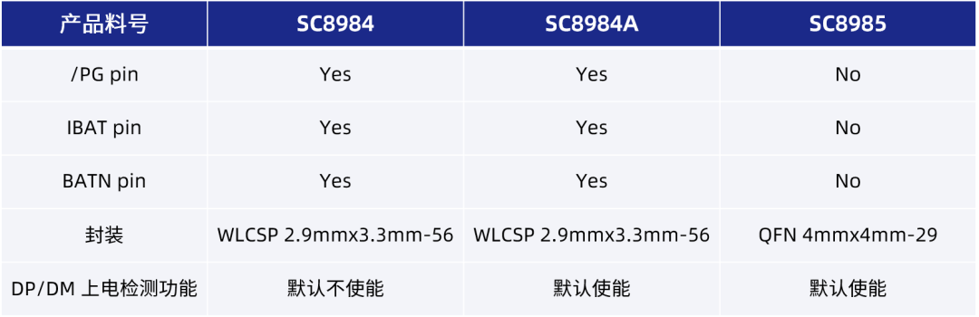 SC8984 适配 2-4 串锂电池应用,具备 3.6V-22V 的宽输入电压工作范围,充电电流最高 5A;同时支持反向 OTG 功能,输出电压范围 3V-22V 且输出电流最高可达 5A,高于同类竞品。