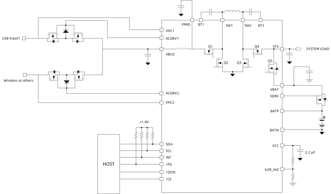 SC8984 静态功耗表现优异,典型电池待机电流仅 45μA,在 ship 模式及 shutdown 模式下,静态电流可分别低至 9μA 和 825nA,显著延长设备的仓储和休眠续航时间。同时路径管理 BATFET 具备高达 10A 的持续放电电流能力,为大功率负载的瞬时与持续供电提供强劲支撑。