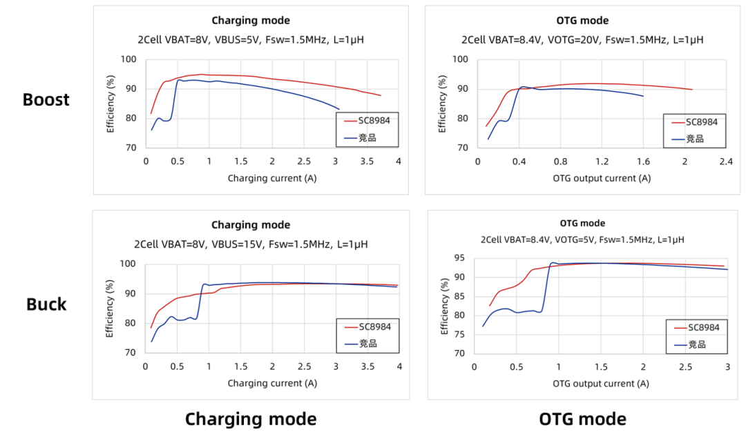 SC8984 与同类竞品在不同模式下的效率曲线对比