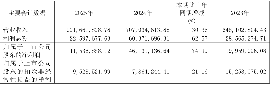 德宏股份2025年实现营收9.22亿元,净利润同比下降74.99%