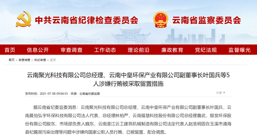 云南省纪委监委7月8日消息显示,云南聚光科技有限公司总经理等5人涉嫌行贿被采取留置措施。