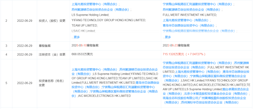据天眼查显示,6月29日,爱科微半导体(上海)有限公司(以下简称“爱科微半导体”)发生工商变更,新增股东包括北京小米智造股权投资基金合伙企业(有限合伙)等。
