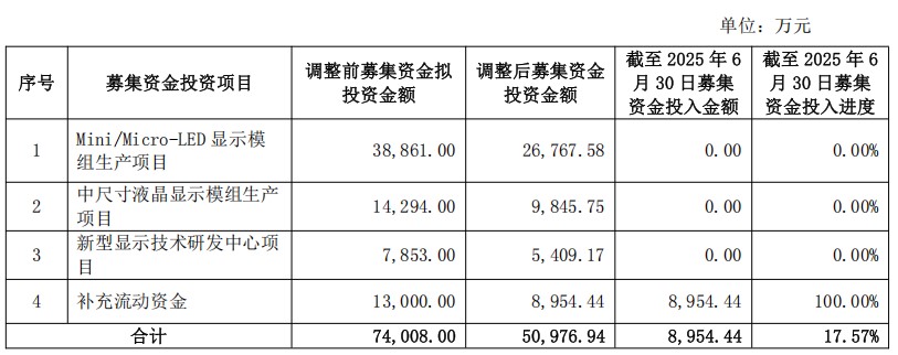 9月19日,南极光发布公告称,公司于9月19日召开会议,审议通过了《关于部分募集资金投资项目延期的议案》,同意公司在向特定对象发行股票募集资金投资项目实施主体、募集资金用途和投资总额不变的情况下,对定增募投项目“Mini/Micro-LED显示模组生产项目”、“中尺寸液晶显示模组生产项目”及“新型显示技术研发中心项目”达到预定可使用状态的日期进行调整,由2025年10月11日延期至2026年4月11日。
