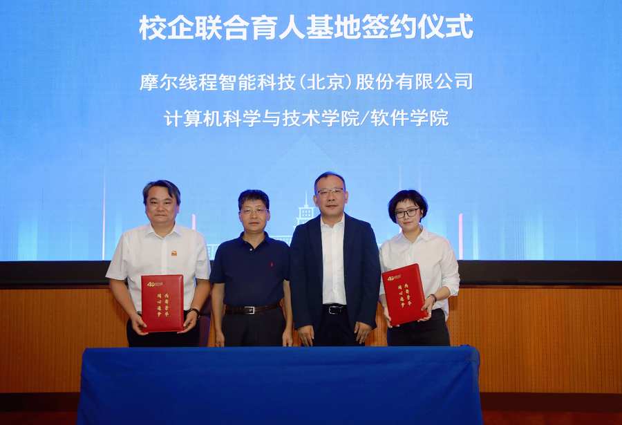 哈尔滨工业大学(威海)计算机科学与技术学院/软件学院院长初佃辉教授、副院长张维刚教授与摩尔线程签署联合育人基地协议