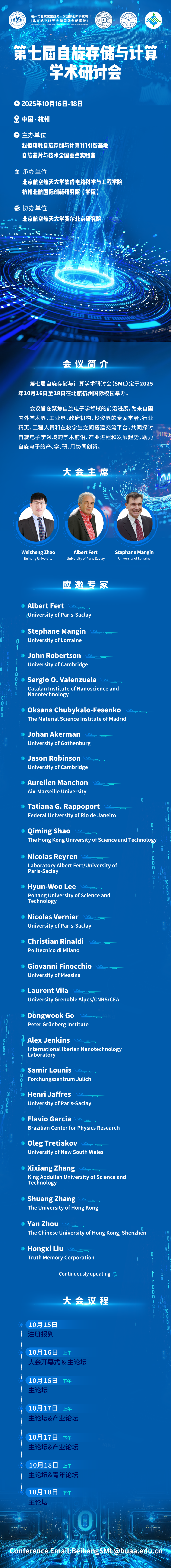 第七届自旋存储与计算学术研讨会(SML)将于2025年10月16日至18日在北航杭州国际校园举办。
