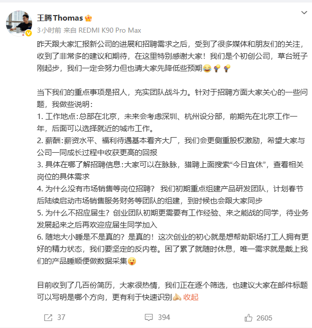 原小米中国区市场部总经理为王腾。9月8日,小米发布内部邮件,辞退中国区员工王腾。辞退理由为泄密和存在利益冲突等严重违规违纪行为。