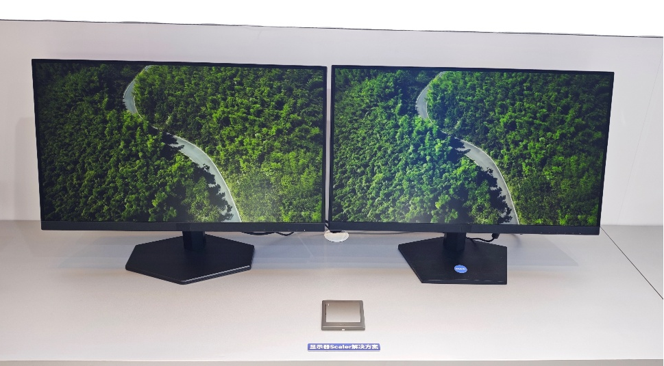 多媒体主控解决方案涵盖采用自研RISC-V CPU的MNT Scaler、画质SoC、XCON、视觉交互SoC等产品,具有系统响应快、画质音质表现好、全栈RISC-V配套软件工具链等优势。其中MNT Scaler以QHD@180Hz高刷新率、4K+Local Dimming画质增强等优势,通过电竞显示器对比演示,体现了RISC-V技术在高端显示领域的突破。