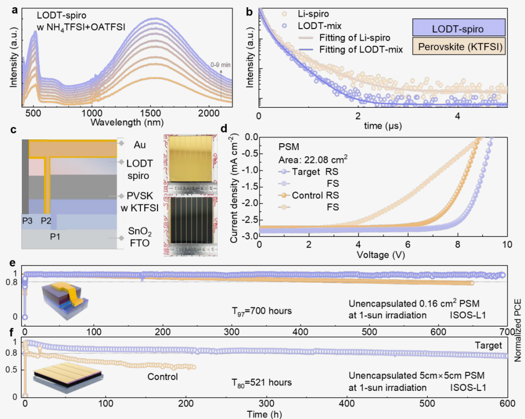 图2 基于LODT策略的钙钛矿光伏组件(PSM)性能与稳定性方面的实验结果
