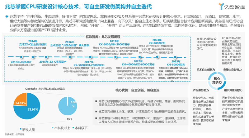 兆芯专注于自主通用处理器产品的技术创新与应用拓展,全面掌握处理器指令集、微架构、互连、IO及其实现技术等核心技术,累计申请专利超1600项,已成功构建起“自主可控、持续兼容、面向新应用”的自主ZX86指令集知识产权体系。该体系为兆芯CPU的持续迭代升级,支撑人工智能等前沿技术驱动的新场景应用、核心应用数据安全以及关基设施安全等需求提供坚实的算力支撑与技术保障。