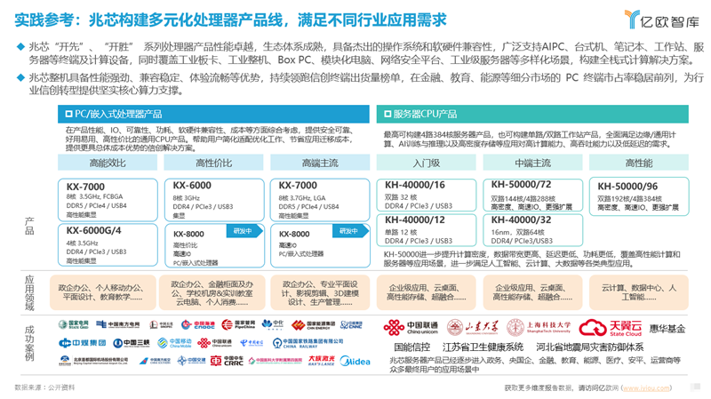 兆芯已成功自主研发并量产多款通用处理器,形成“开先”PC/嵌入式处理器和“开胜”服务器处理器两大产品系列,具备从桌面终端到数据中心的全场景算力解决方案能力。通过与联想开天、软通华方、紫光计算机、希沃、联和东海等产业伙伴的深度合作,基于兆芯平台已经构建信创AIPC、轻薄笔记本、台式机、一体机、服务器、嵌入式计算平台等丰富终端,其中搭载开先KX-7000处理器的联想开天P90z G1t,更是信创领域首款支持DeepSeek系列大模型本地部署的AIPC,为行业智能化转型提供了有力抓手。