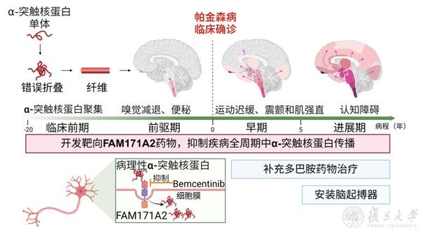 帕金森病是全球第二大的神经退行性疾病,我国有超过500万的帕金森病患者。目前的干预方式仅能缓解症状,尚无改变疾病进程的治疗方法。从发病机制来说,帕金森病的发展与病理性α-突触核蛋白在脑内的传播密切相关,但介导传播的神经元受体此前并不明确。