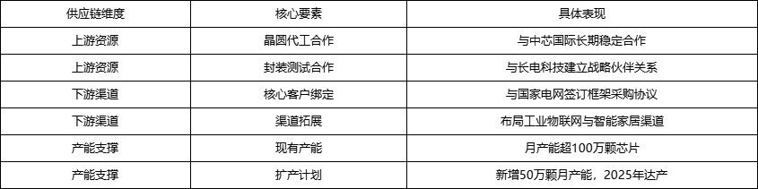 该模式下,公司可轻资产运营,将资源集中于研发与技术迭代,契合芯片设计行业“技术驱动”的核心逻辑。核心优势体现在三方面:一是轻资产结构降低固定资产投入,提升资金使用效率,可将更多资源倾斜于研发;二是专注设计环节强化技术壁垒,依托22年PLC技术积累持续推出高性价比芯片(如2024年智能照明PLC SOC芯片);三是供应链响应灵活,可根据下游市场(智能电网、光伏新能源等)需求快速调整产品设计,适配物联网多场景智能化升级需求,支撑解决方案的竞争力。