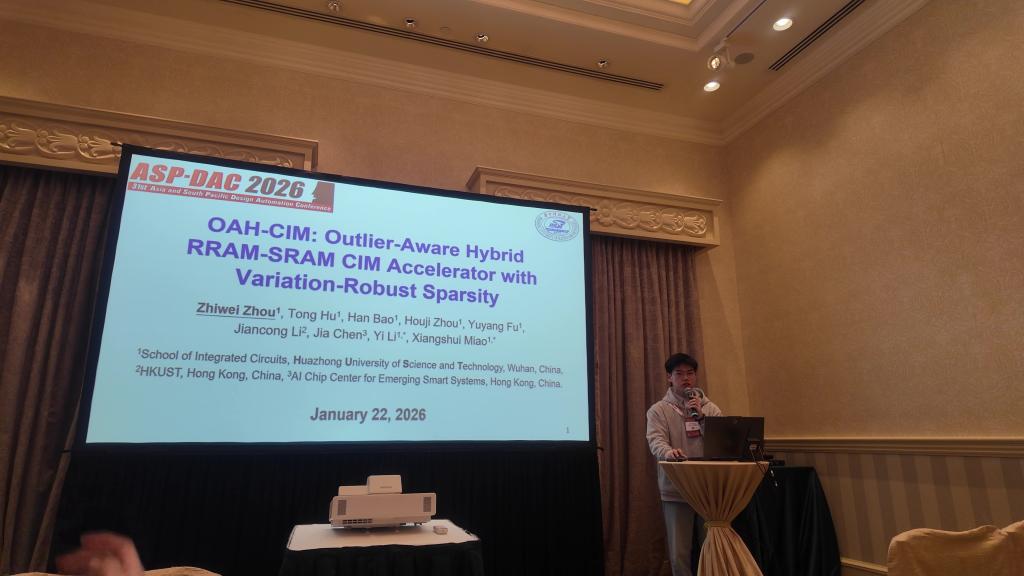 1月19日至22日,第31届亚洲及南太平洋设计自动化会议(Asia and South Pacific Design Automation Conference, ASP-DAC 2026)在中国香港举办。我院缪向水、李祎教授团队在本次大会发表了两项关于存算一体领域的最新研究成果。其中,关于Transformer混合存算加速器的研究工作荣获大会最佳论文提名奖(Best Paper Award Nomination)。这是对我院在存算一体与AI硬件加速领域科研实力的重要肯定。