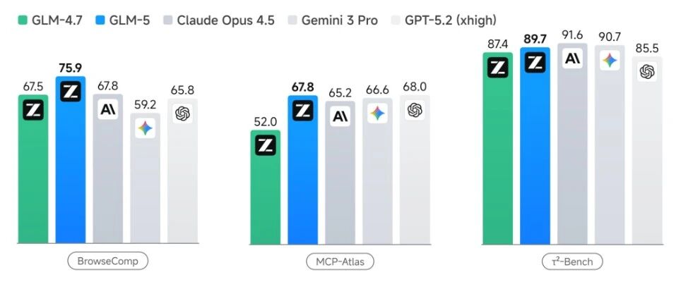 GLM-5 在 Agent 能力上实现开源 SOTA,在多个评测基准中取得开源第一