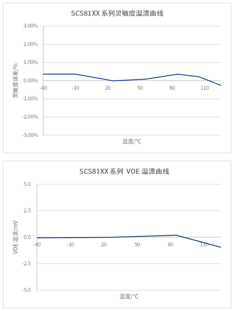SCS81XX 系列温漂曲线。上:灵敏度温漂;下:VOE 温漂