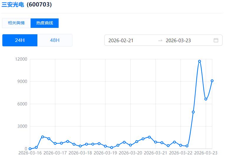【上市企业热度观测日志】3月23日:三安光电实控人被查、寒武纪跌破千元、豪威集团10亿增资荣芯