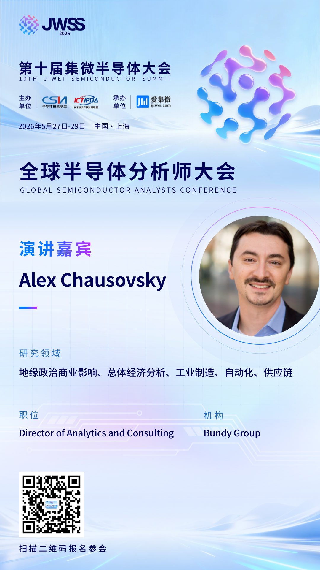 这是一场直击地缘变局与企业命脉的思想盛宴,一次与宏观战略专家面对面交锋的难得机遇。诚邀您亲临现场,聆听Alex Chausovsky的深度解析,与来自超过12个国家和地区的产业精英共同探寻不确定时代的制胜之道。5月27日,上海张江,期待与您相见!