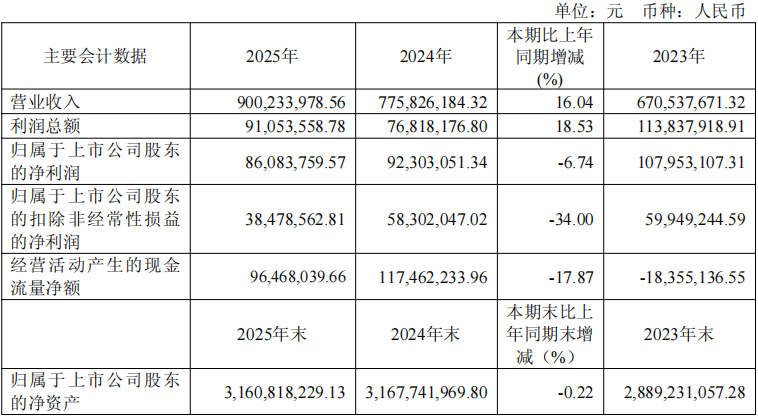 3月25日,普源精电发布2025年年度报告。报告显示,公司全年实现营业收入9亿元,同比增长16.04%;实现归属于上市公司股东的净利润0.86亿元;扣除非经常性损益后的净利润为0.38亿元。